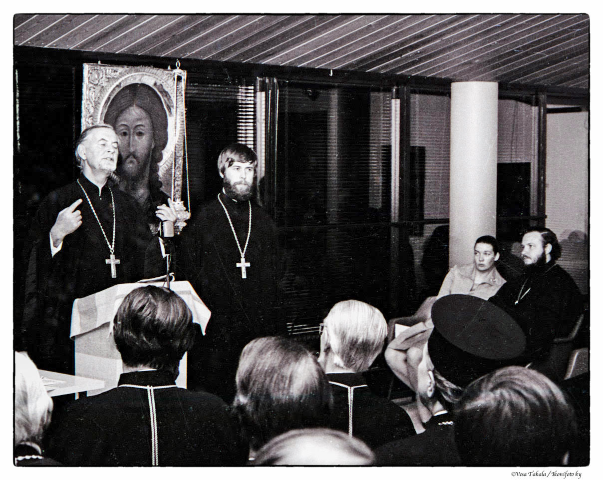 7. joulukuuta 2017 kello 21.06 Schmemann sidoroff vt.jpg (tiedosto) 493 KiB Hannu Isät Alexander Schmemann ja Matti Sidoroff OPL:n pappien opintopäivillä Kuopiossa 1978, yleisön joukossa mm. arkkipiispa Paavali ja Viipurin piispa (myöhemmin Moskovan ja koko Venäjän patriarkka) Kirill tulkkinaan Helena Pavinskij. (Kuva © Ves... 1